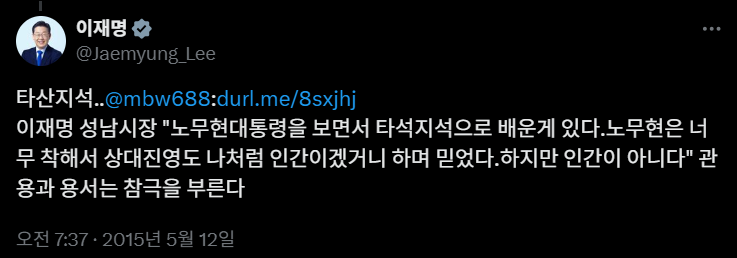 우선 아래 이재명이 과거에 직접 작성한 트위터 (현 X) 문구를 보시죠.